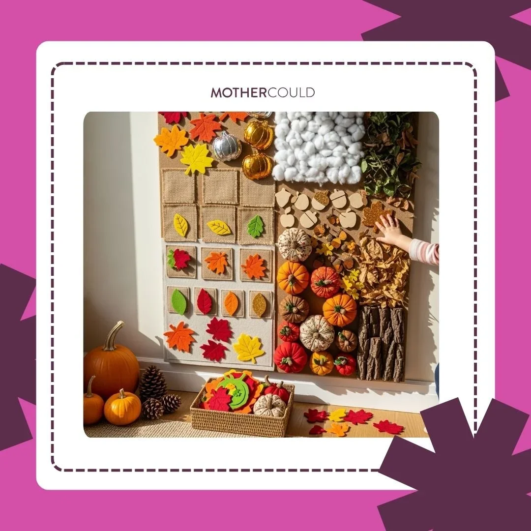 Fall Sensory Wall: Remember the outdoor sensory wall DIY I shared? Same idea here. Attach anything from leaves to orange string lights to the wall and let kids explore!