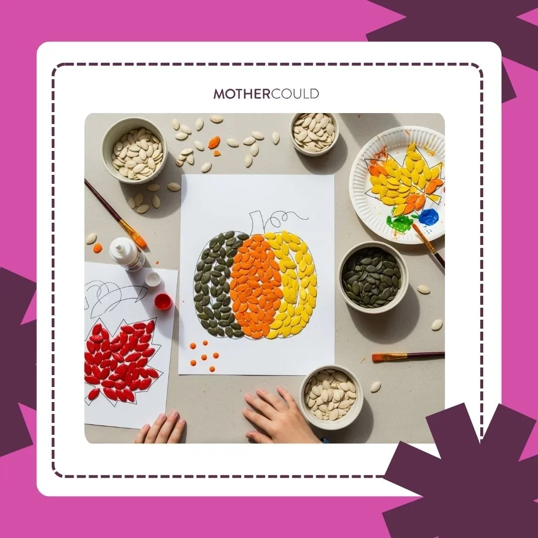 Pumpkin Seed Mosaic: Draw a pumpkin on a piece of paper. Then, add a thin layer of glue, and have kids drop dyed pumpkin seeds to create a mosaic!