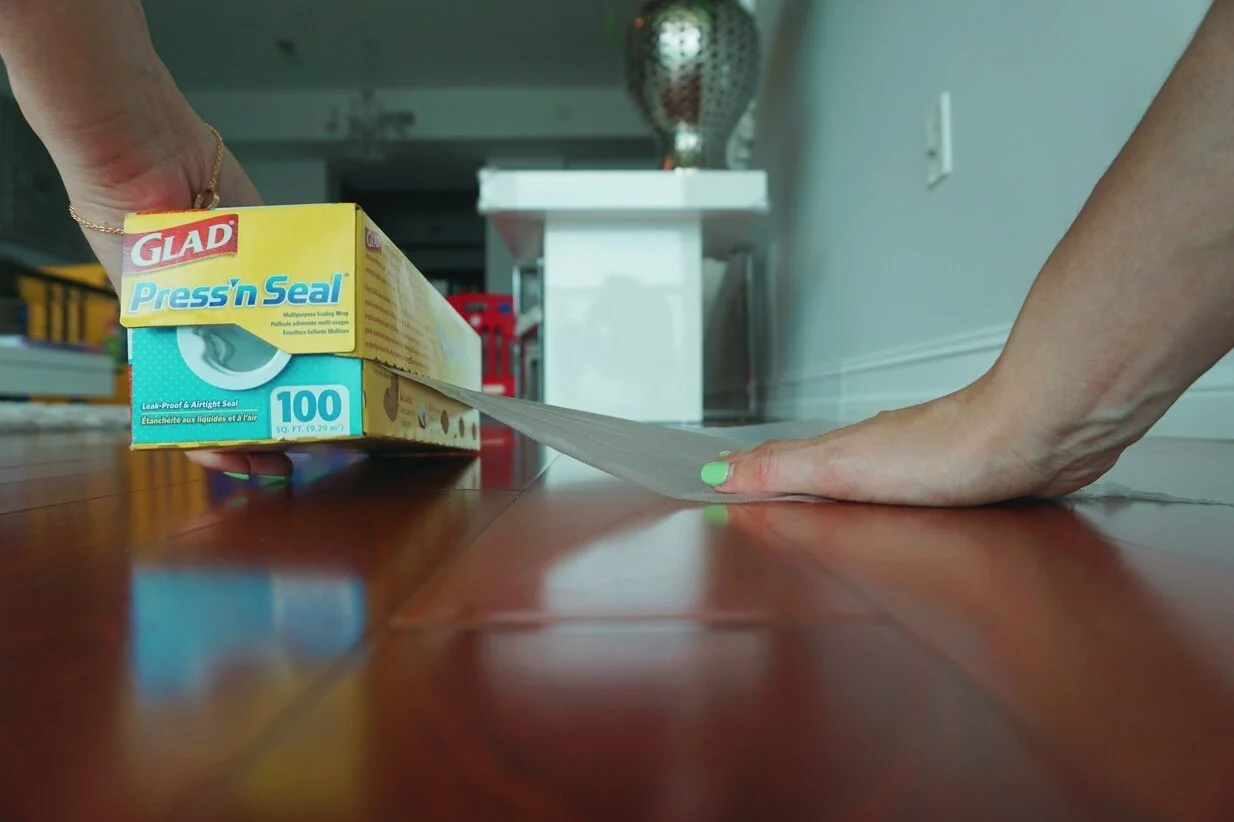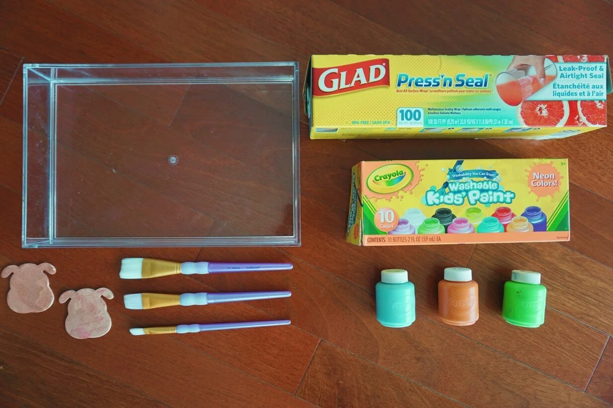 STEP 1: Place Glad Press N' Seal on the area you will be painting on (makes clean up fast and easy).